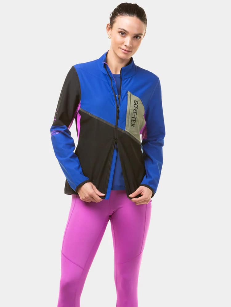 El corte entallado de la Tech GORE-TEX® Windstopper sigue la silueta femenina sin ser restrictivo: ceñido suficiente para evitar que el tejido sobrante genere resistencia al viento o interfiera con el movimiento de brazos, pero con la amplitud necesaria para correr sin sentirse apretada. Sin faldón trasero exagerado, sin hombros sobredimensionados.