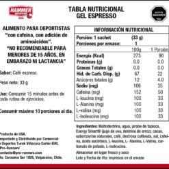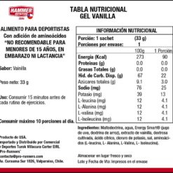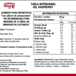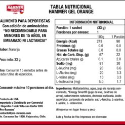 Cada sobre de Hammer Gel® aporta energía sostenida a través de carbohidratos de cadena larga (maltodextrina) y una mezcla de aminoácidos esenciales, sin los picos y bajones de glucosa que producen los geles con azúcar simple. El resultado: energía estable, sin molestias digestivas, durante todo el esfuerzo.