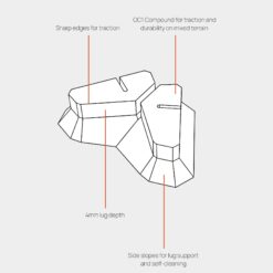 • Tacos de 4mm para agarre óptimo en terrenos técnicos