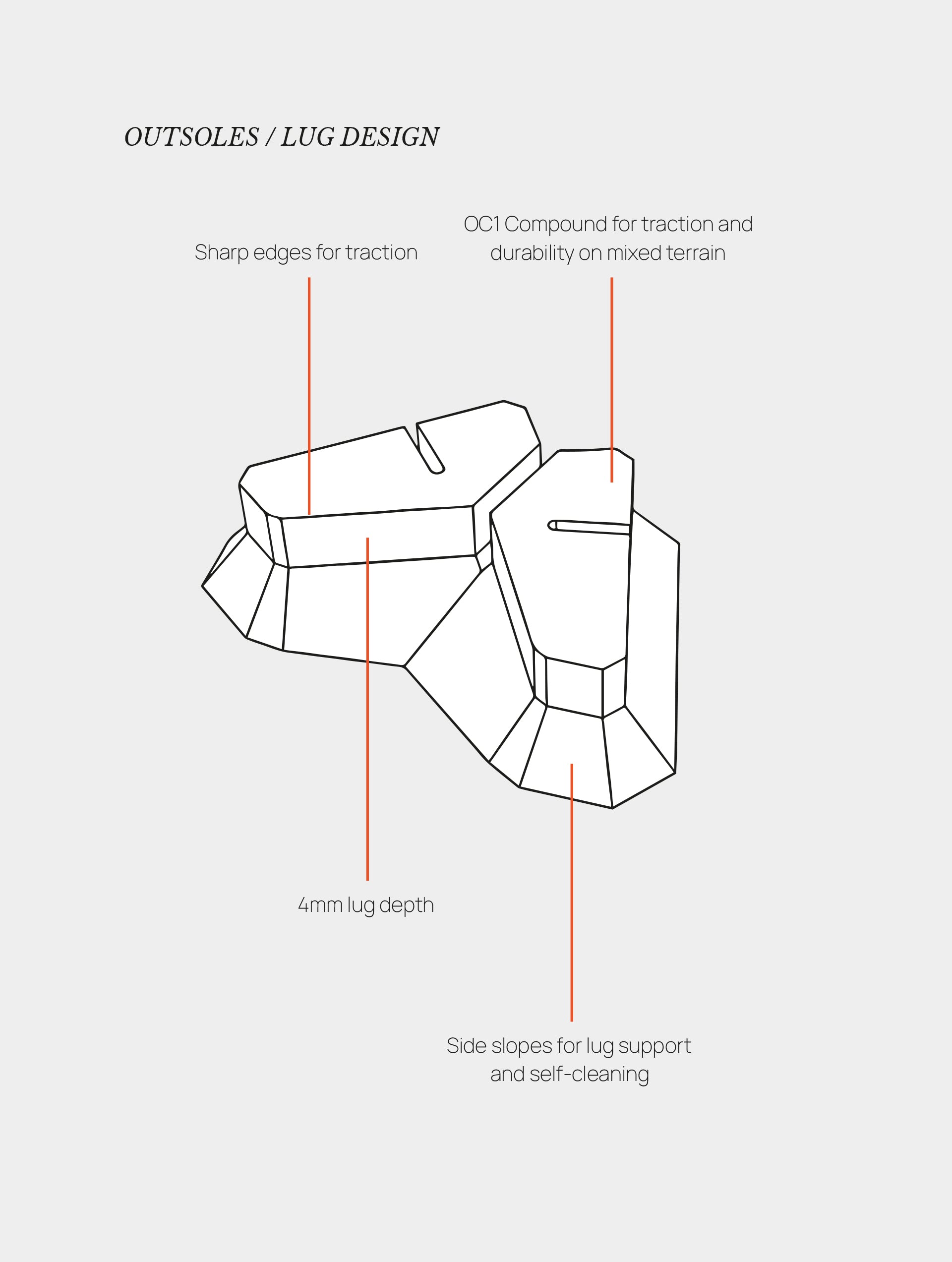 • Suela con compuesto de goma Michelin® OC1 para durabilidad y tracción superior