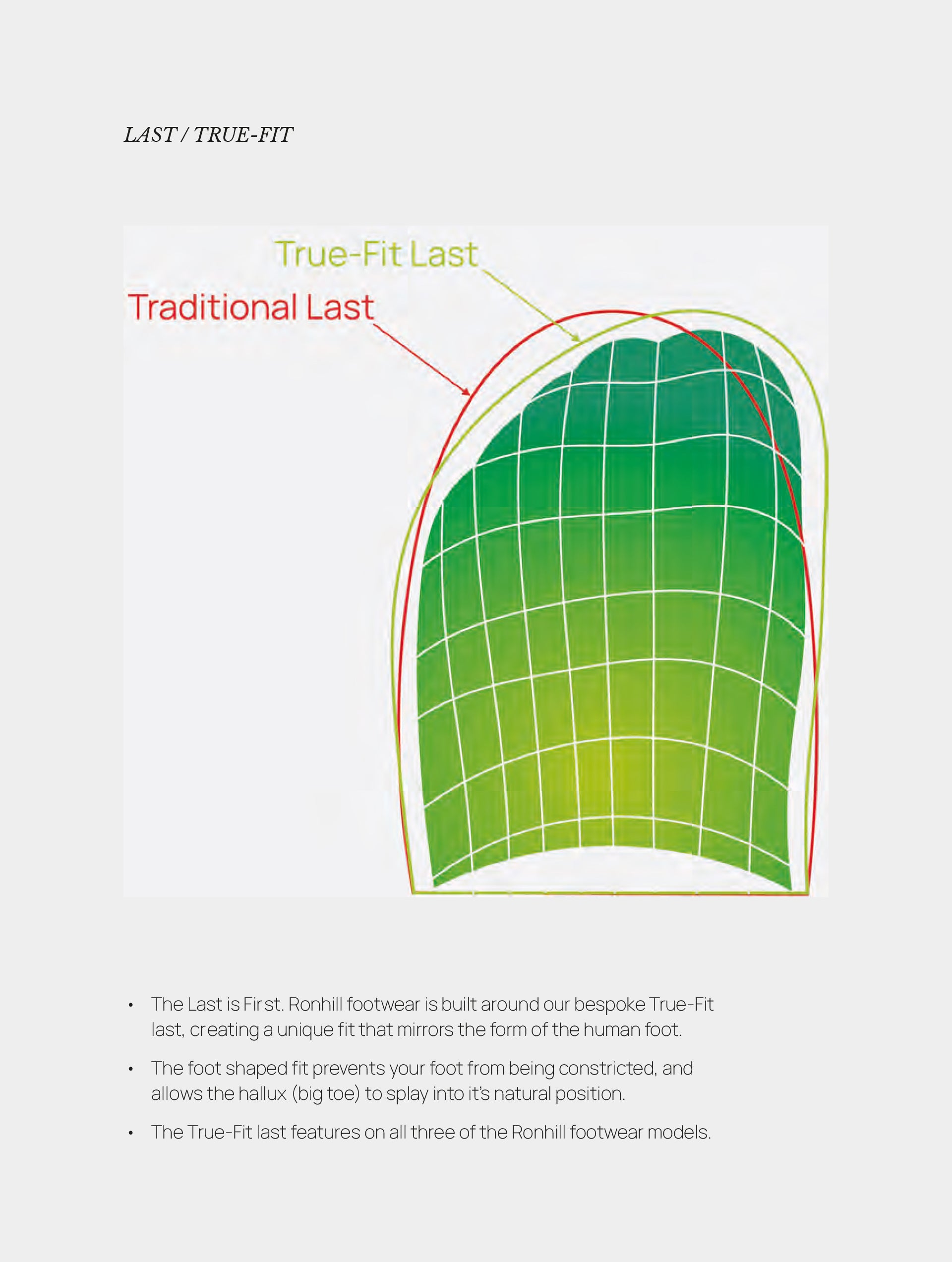 • True-Fit: Horma que respeta la forma natural del pie, permitiendo que los dedos se expandan para mayor estabilidad y equilibrio en terrenos irregulares